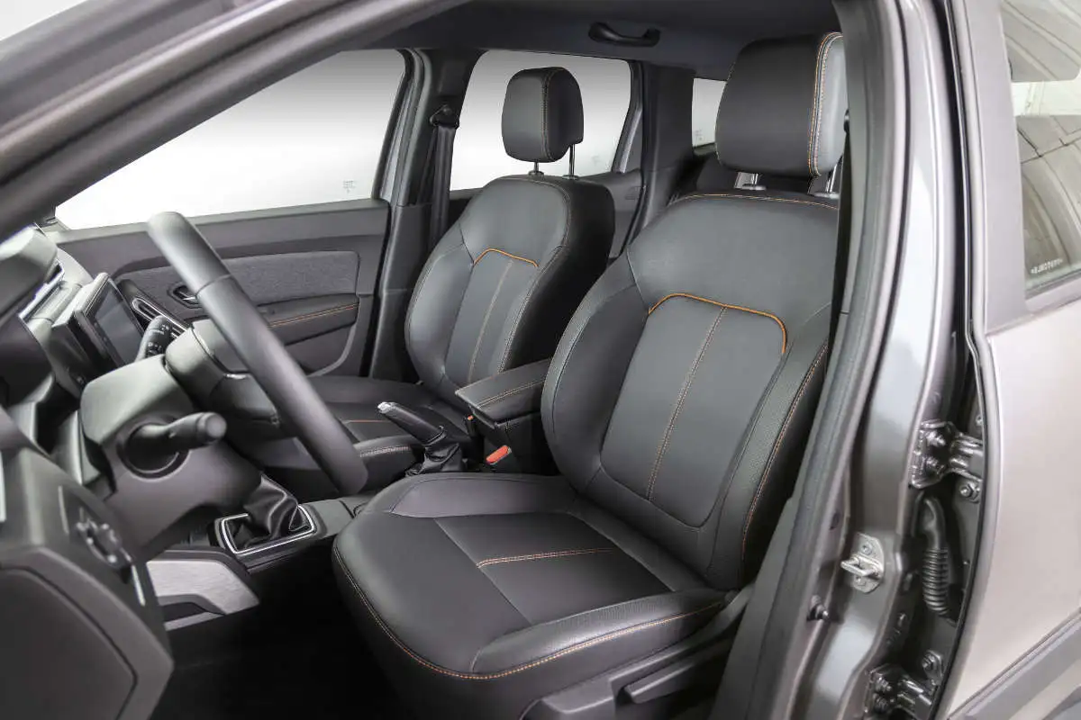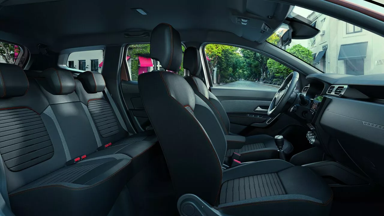 La tapicería de la DUSTER combina funcionalidad y calidad, con acabados en cuero y tela diseñados para ofrecer resistencia al uso diario sin comprometer el confort.